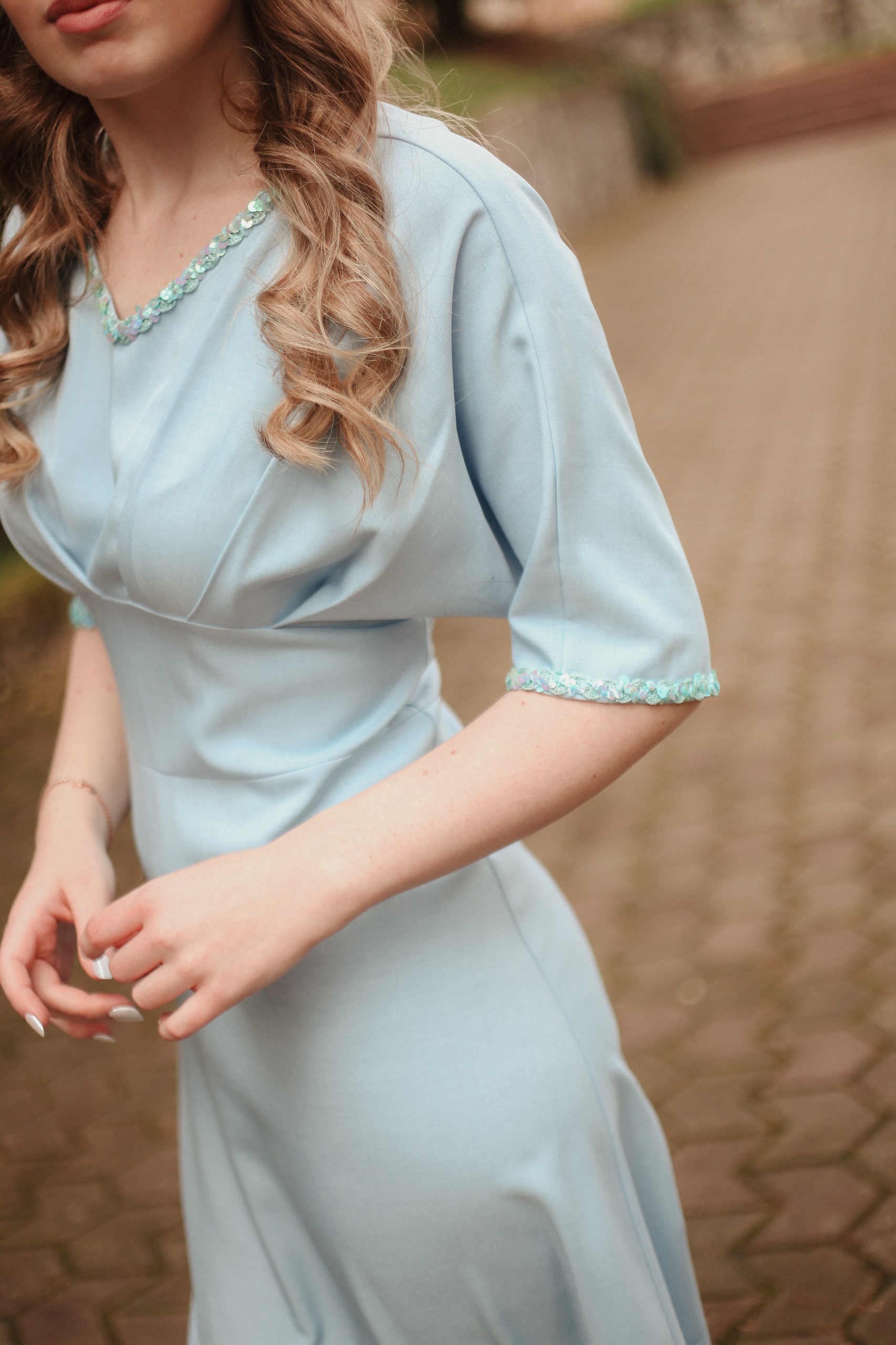 💎 Rochie Elegantă de Damă – Albastru Ciel cu Detalii Strălucitoare 💎