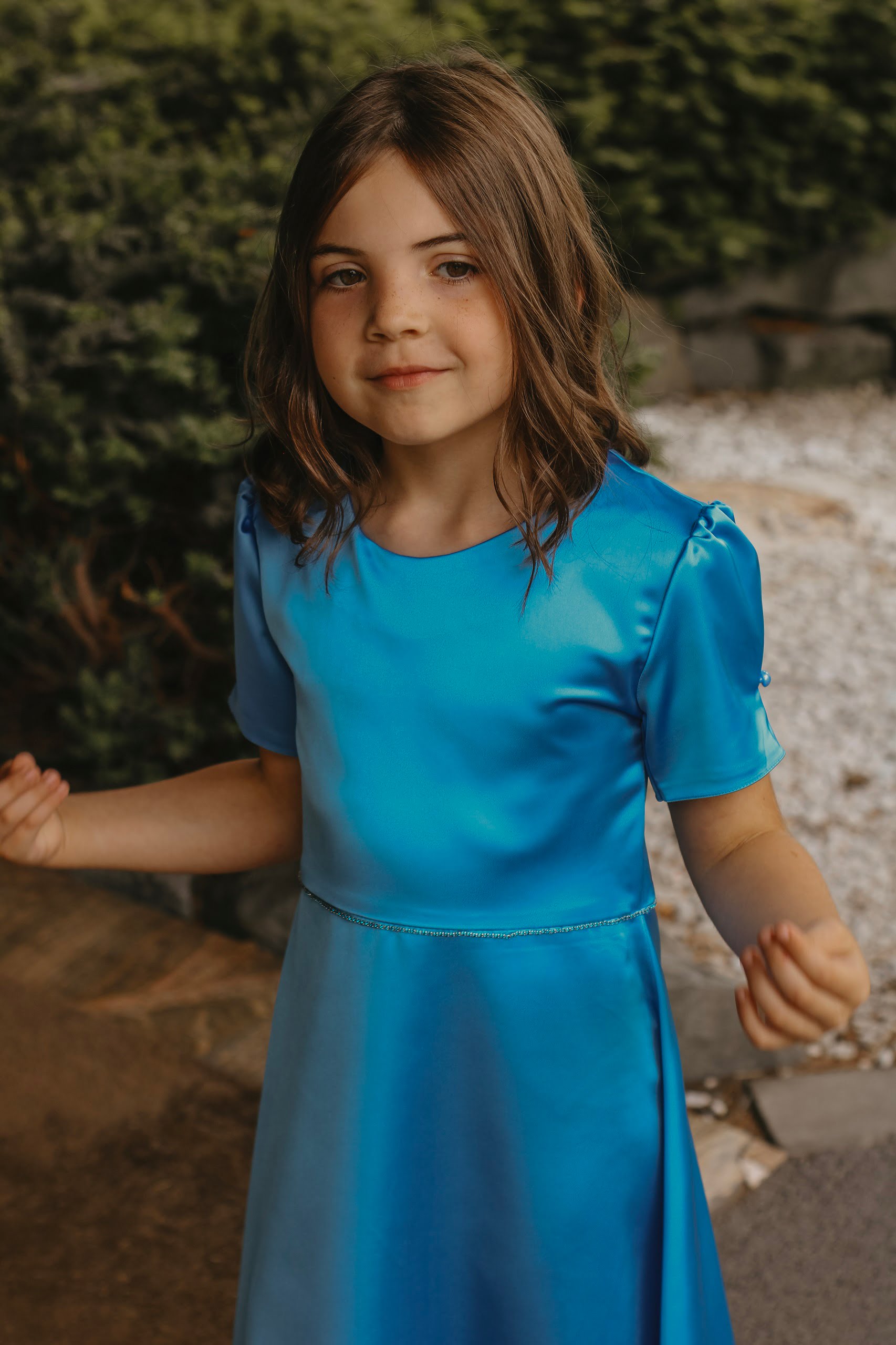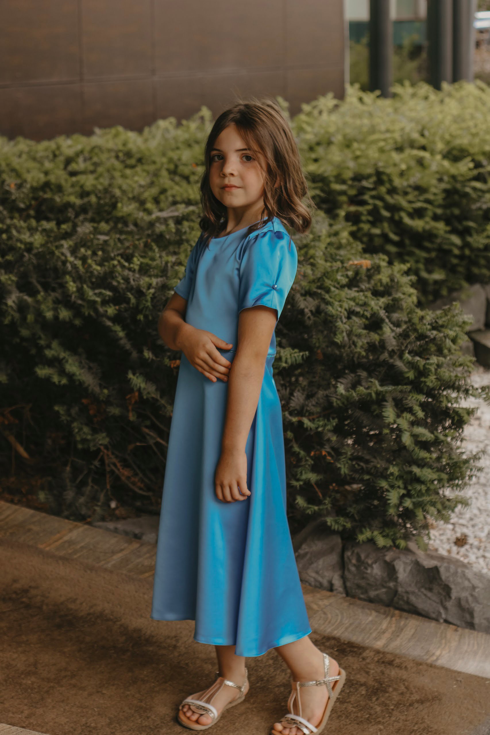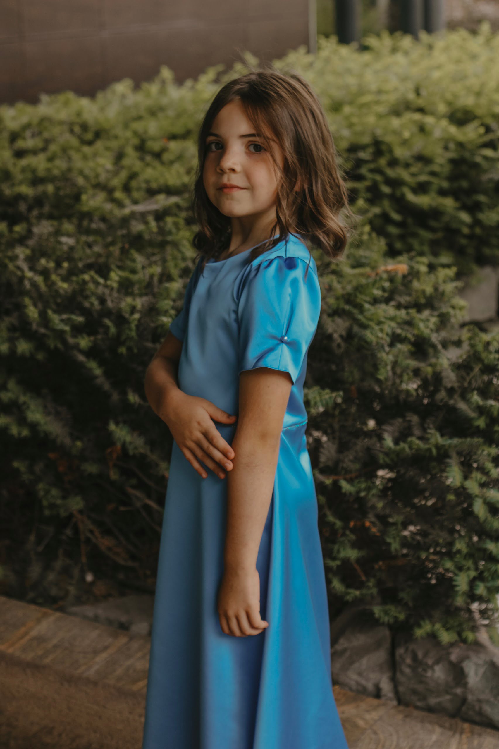 Fermoar ascuns la spate, mânecă scurtă cu nasture