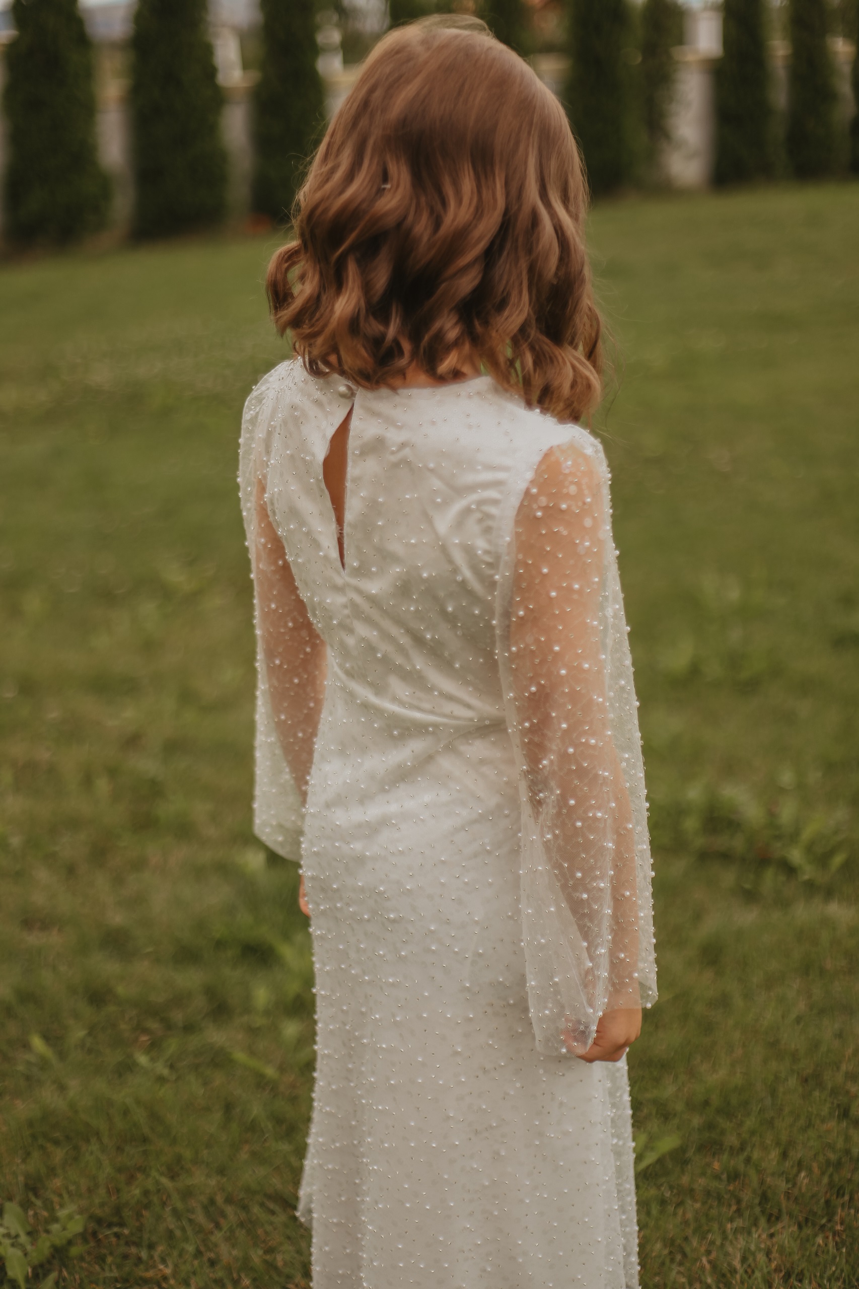 realizată din dantelă cu perle.