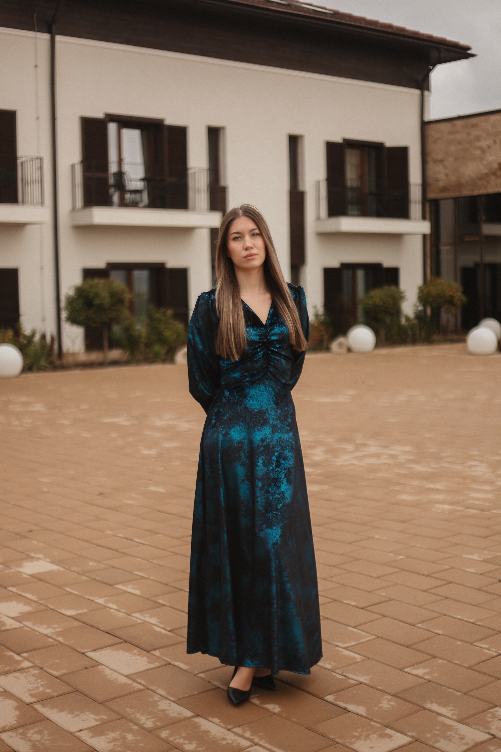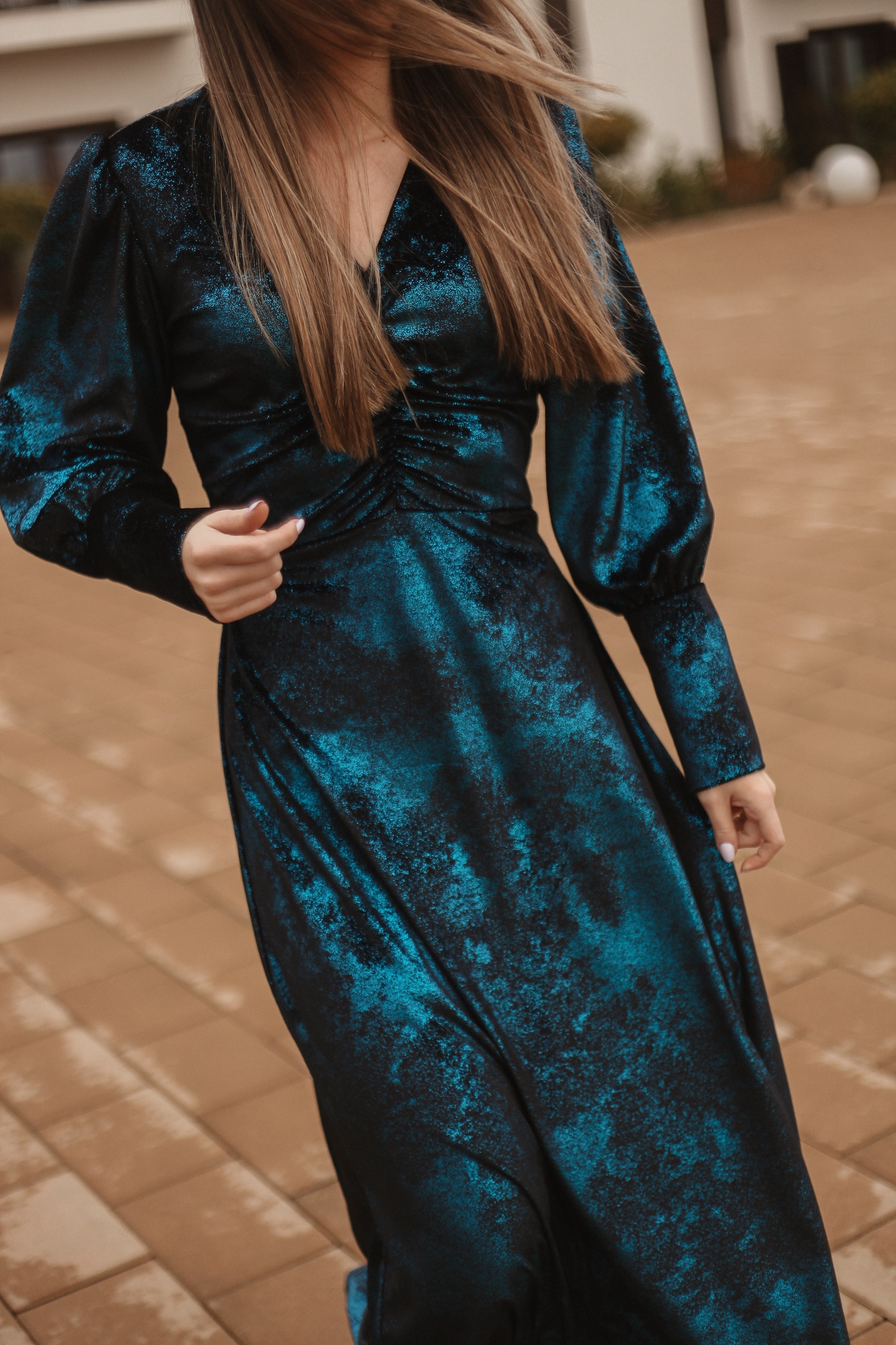 Rochia Divva este o rochie comodă și foarte elegantă realizată din catifea imprimată.