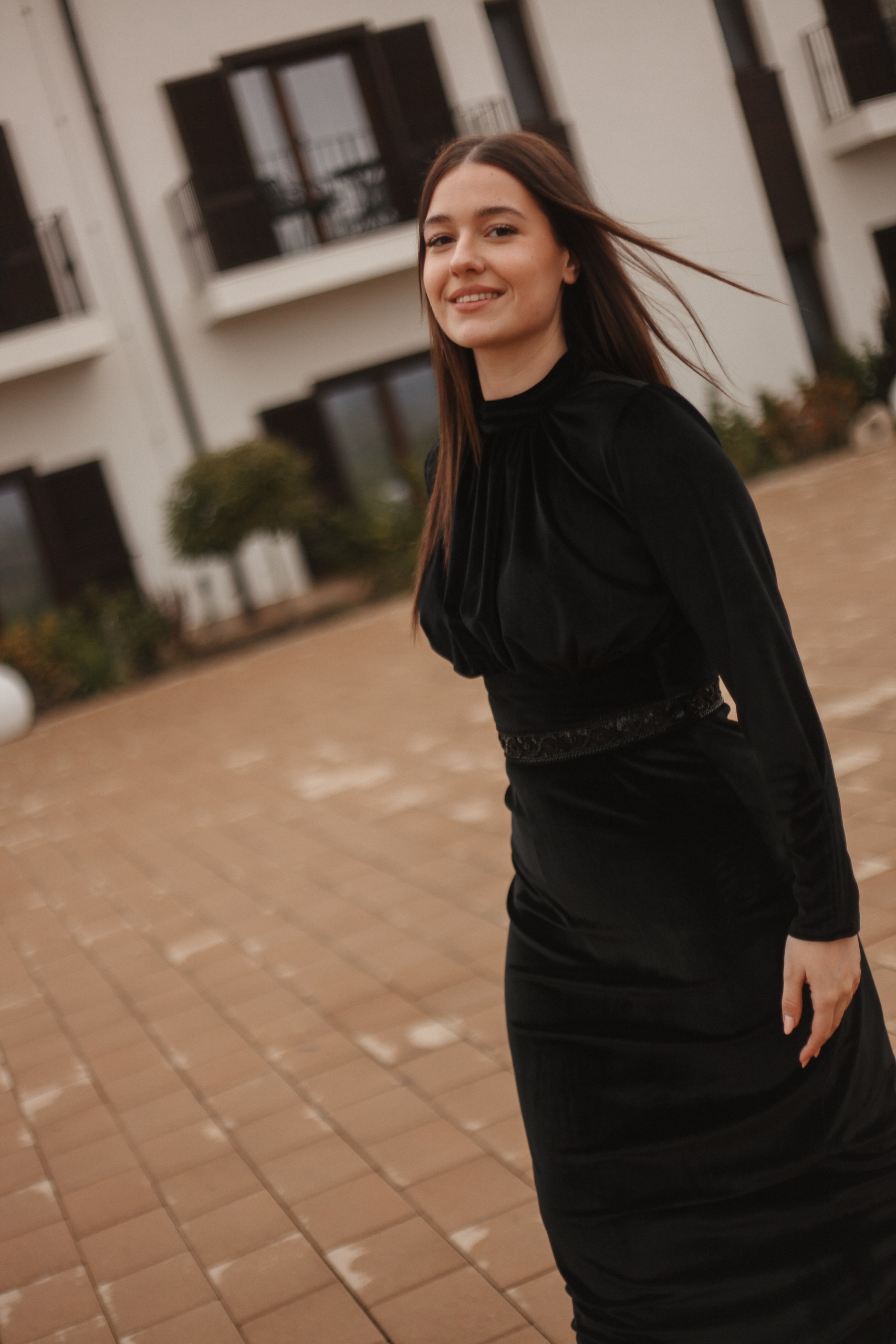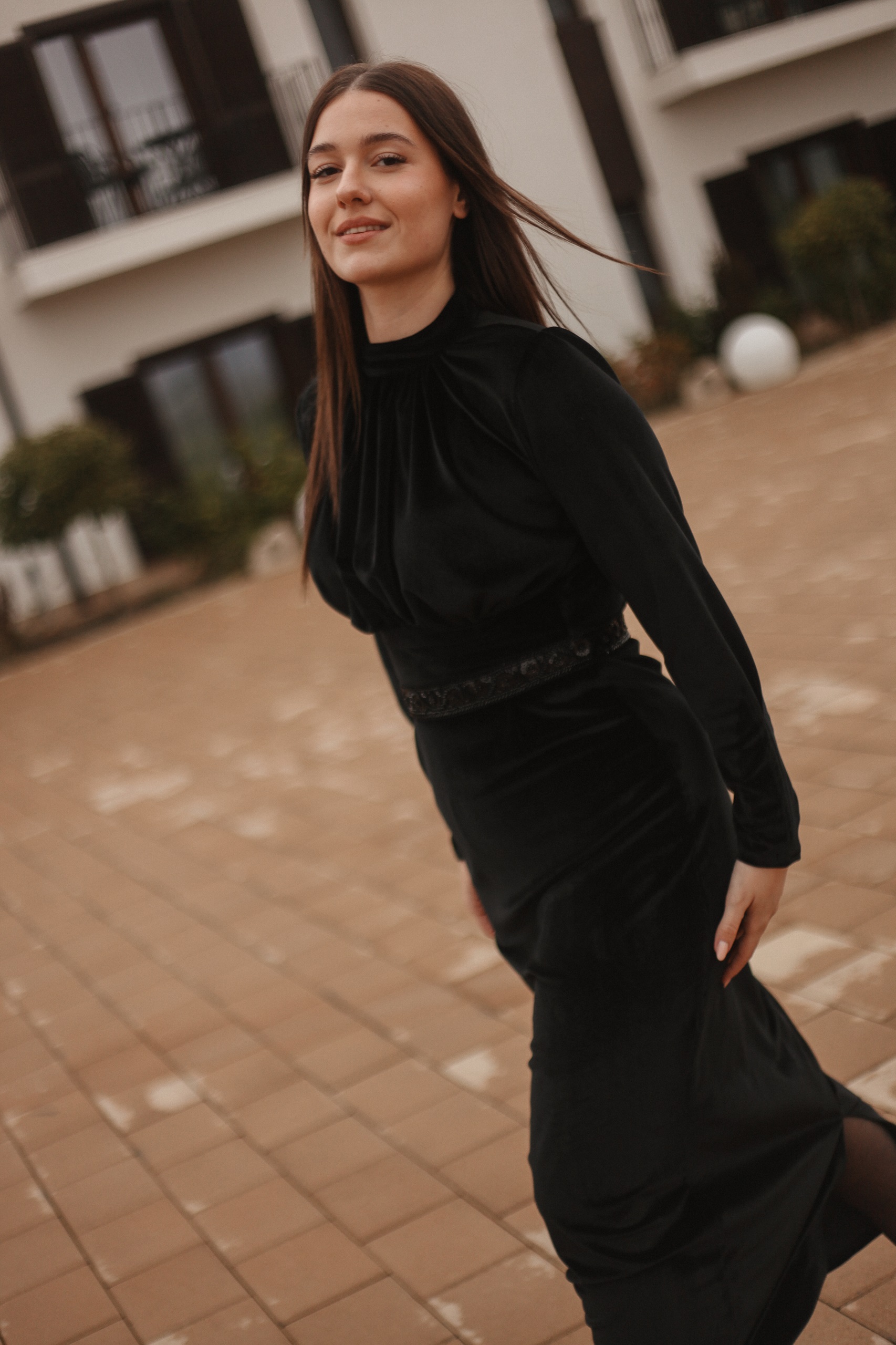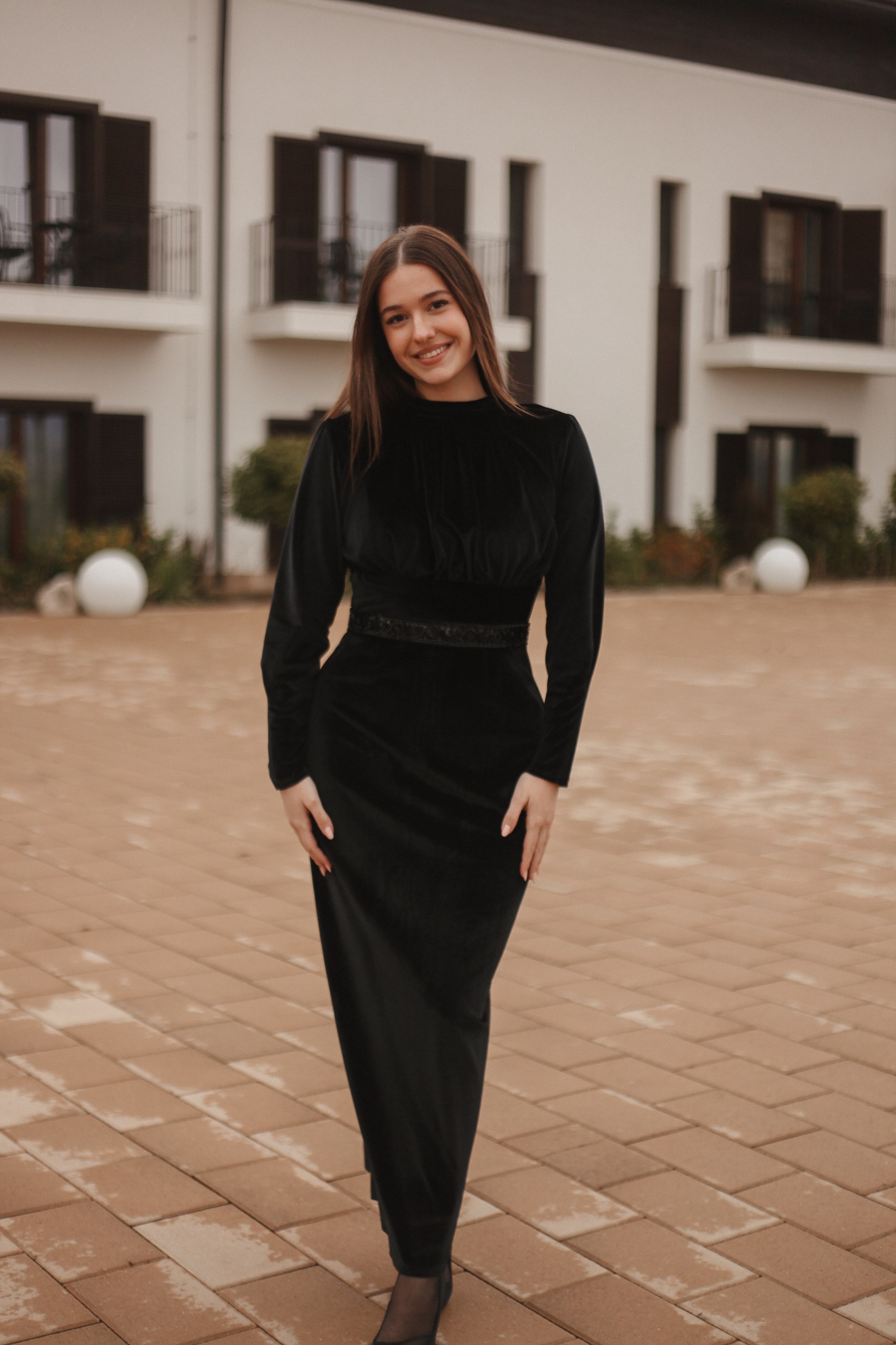 Rochia Divya este o rochie foarte elegantă realizată din catifea cu brâu de diamante in talie.