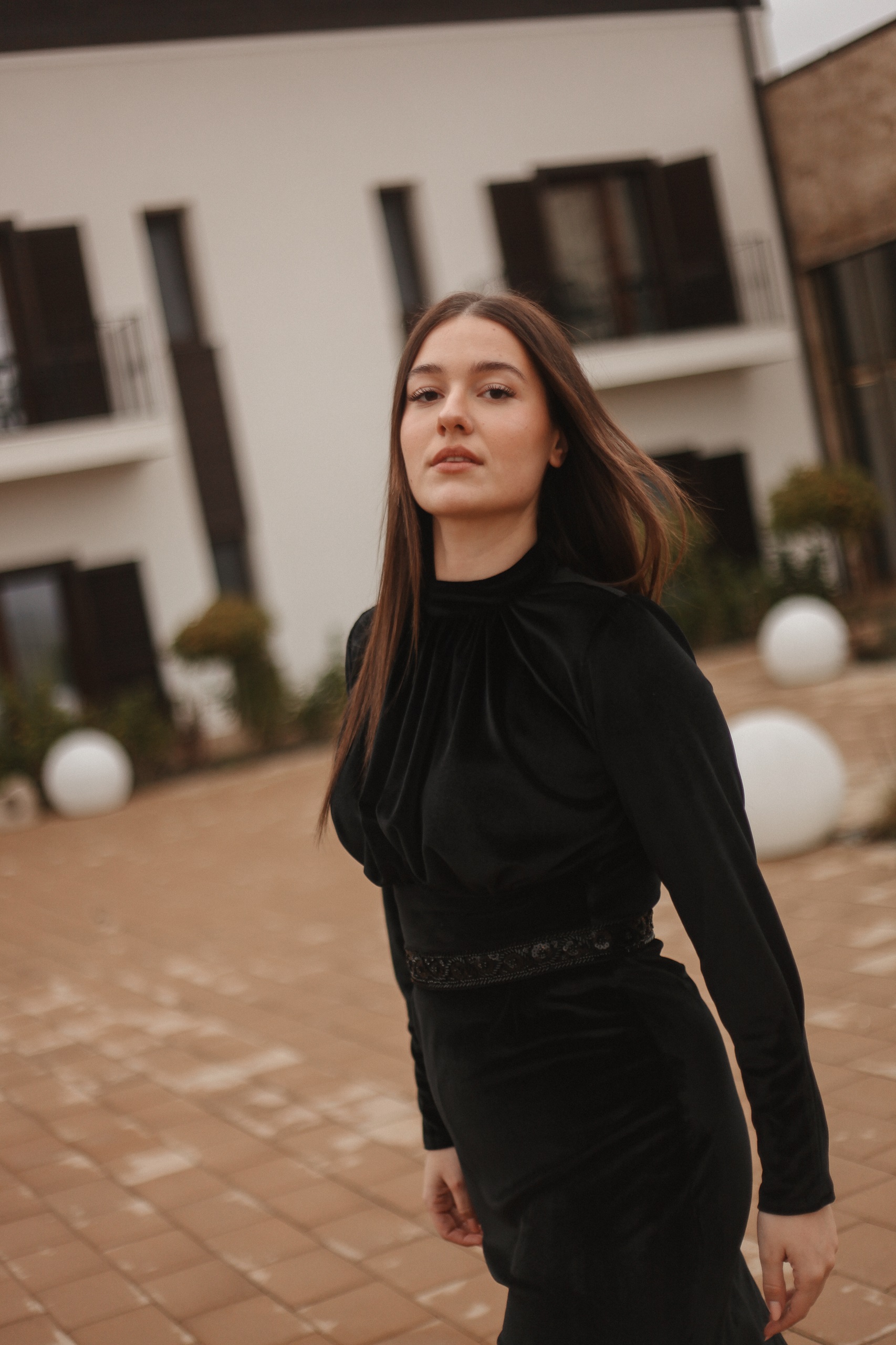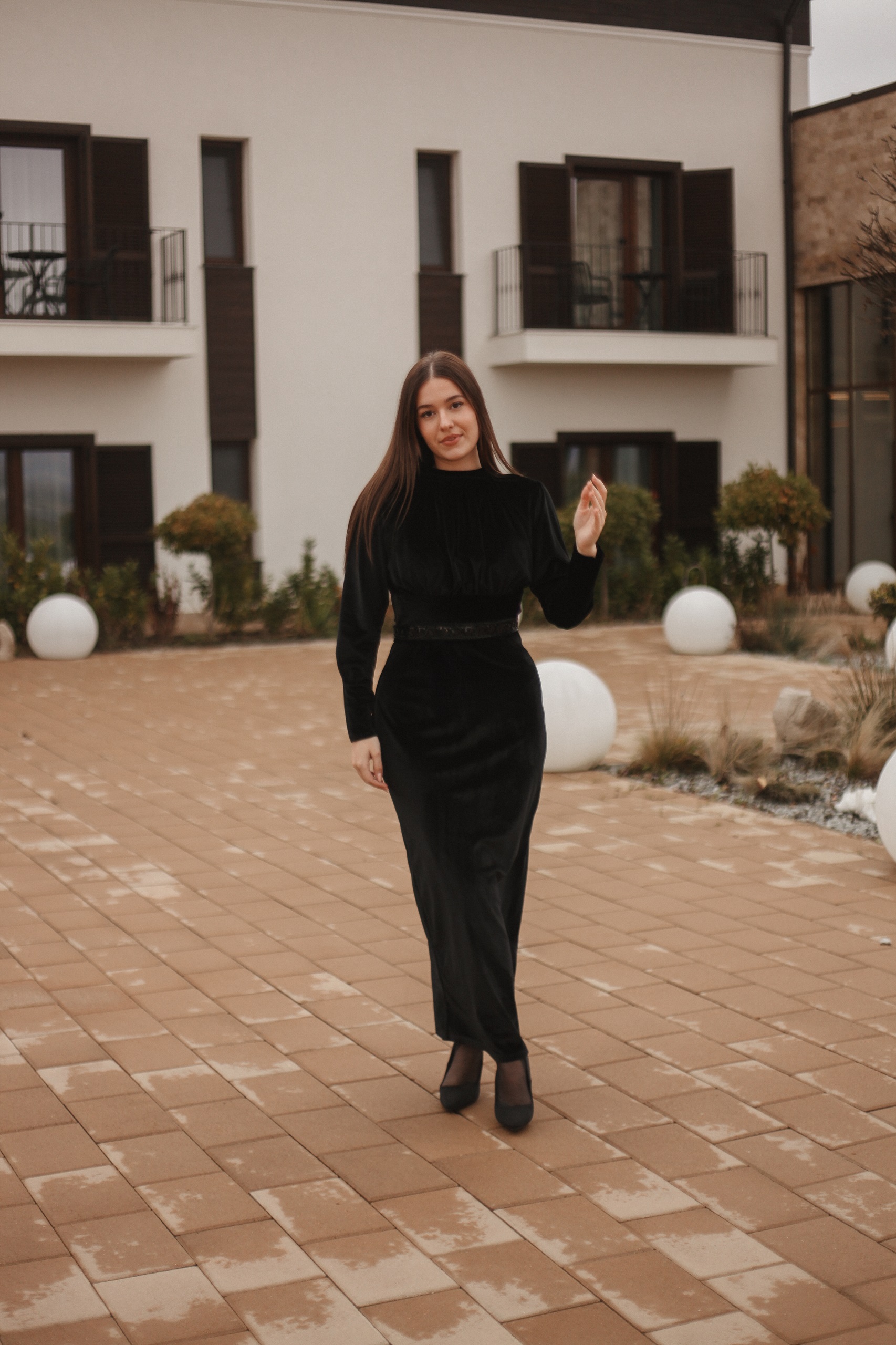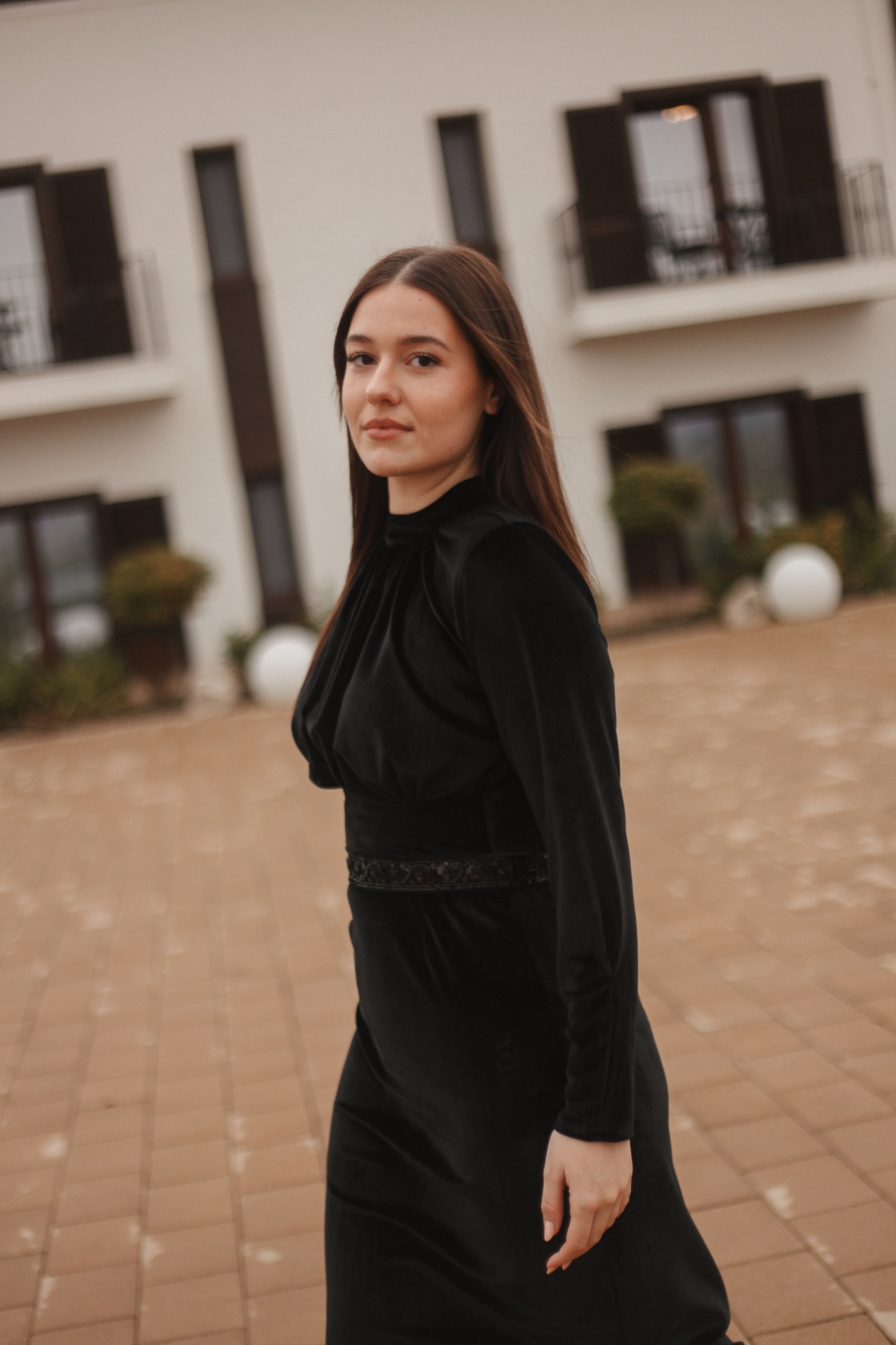 Rochia Divya este o rochie foarte elegantă realizată din catifea cu brâu de diamante in talie.