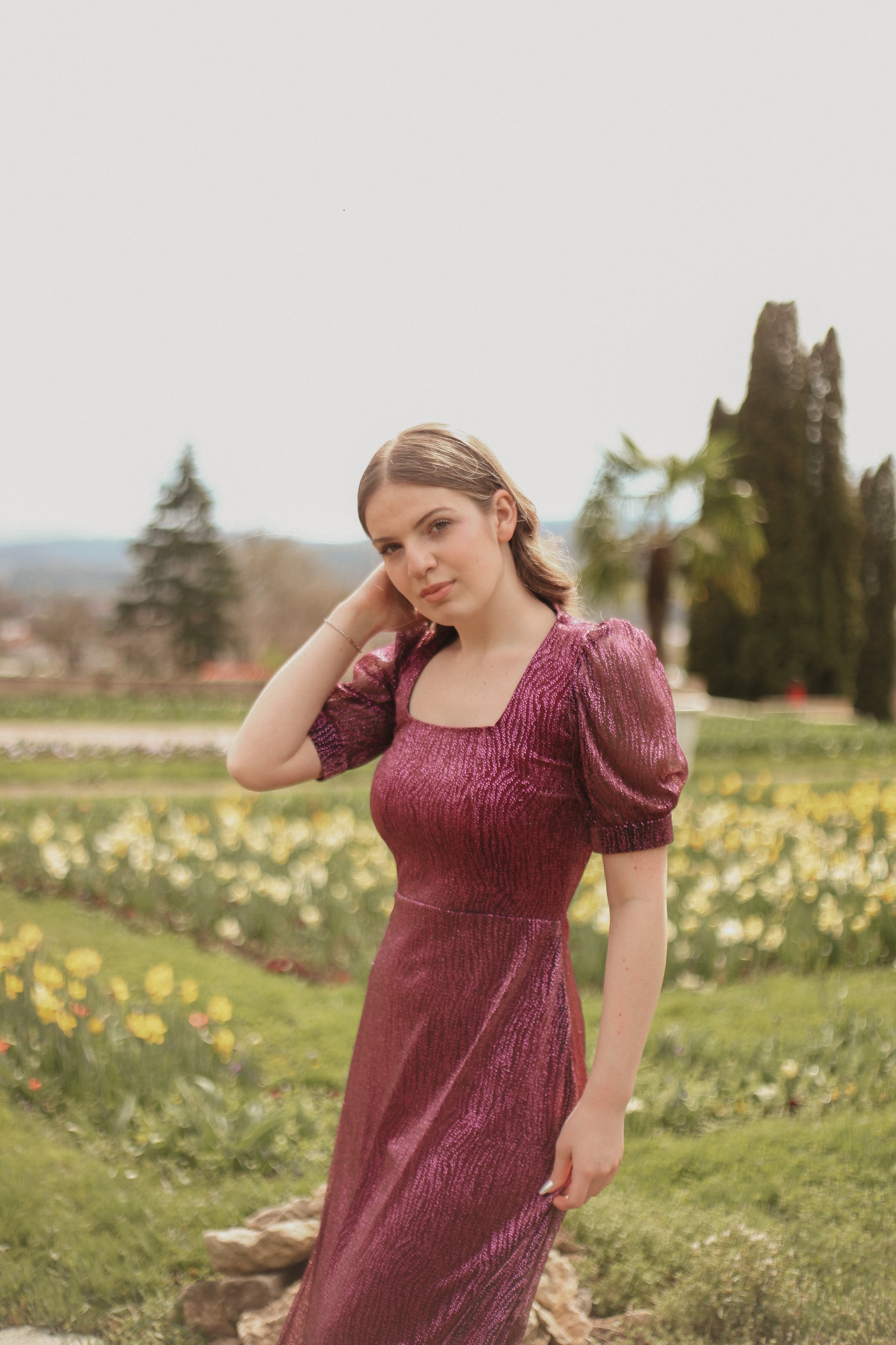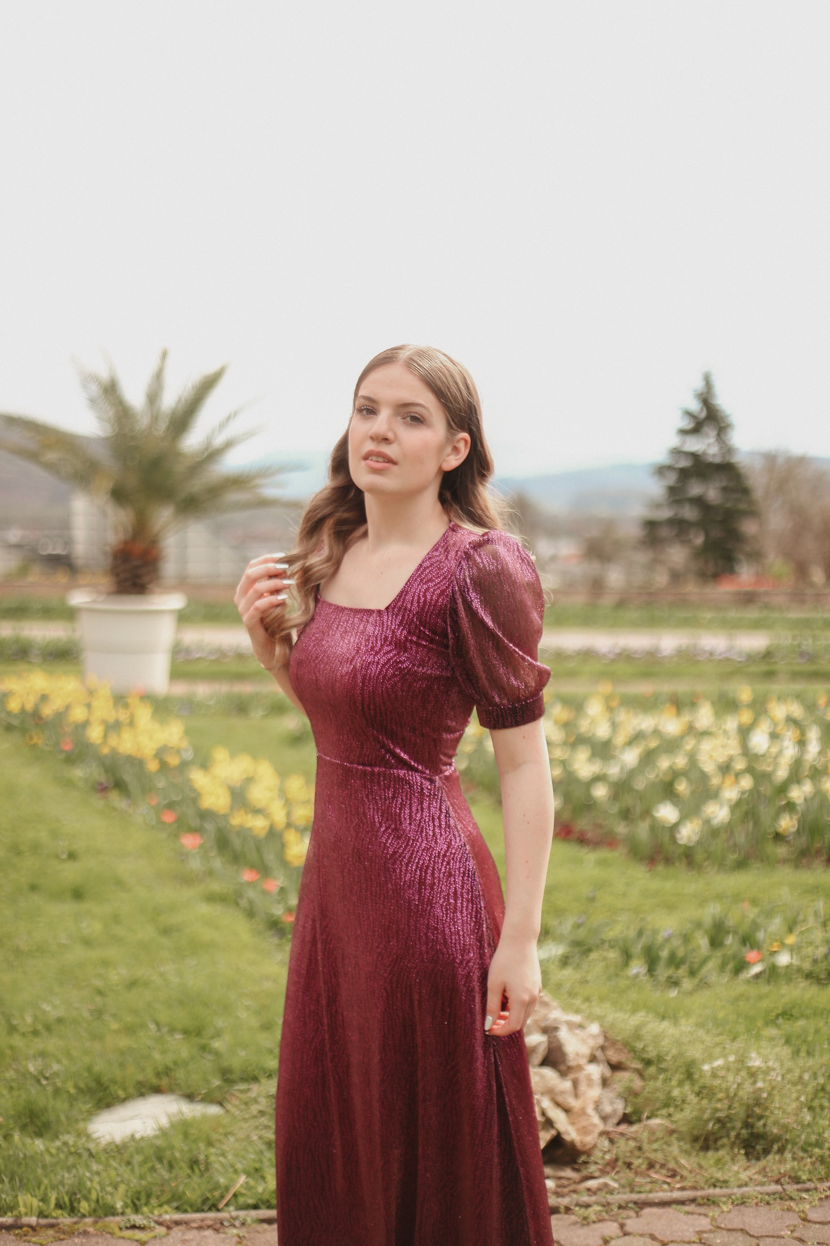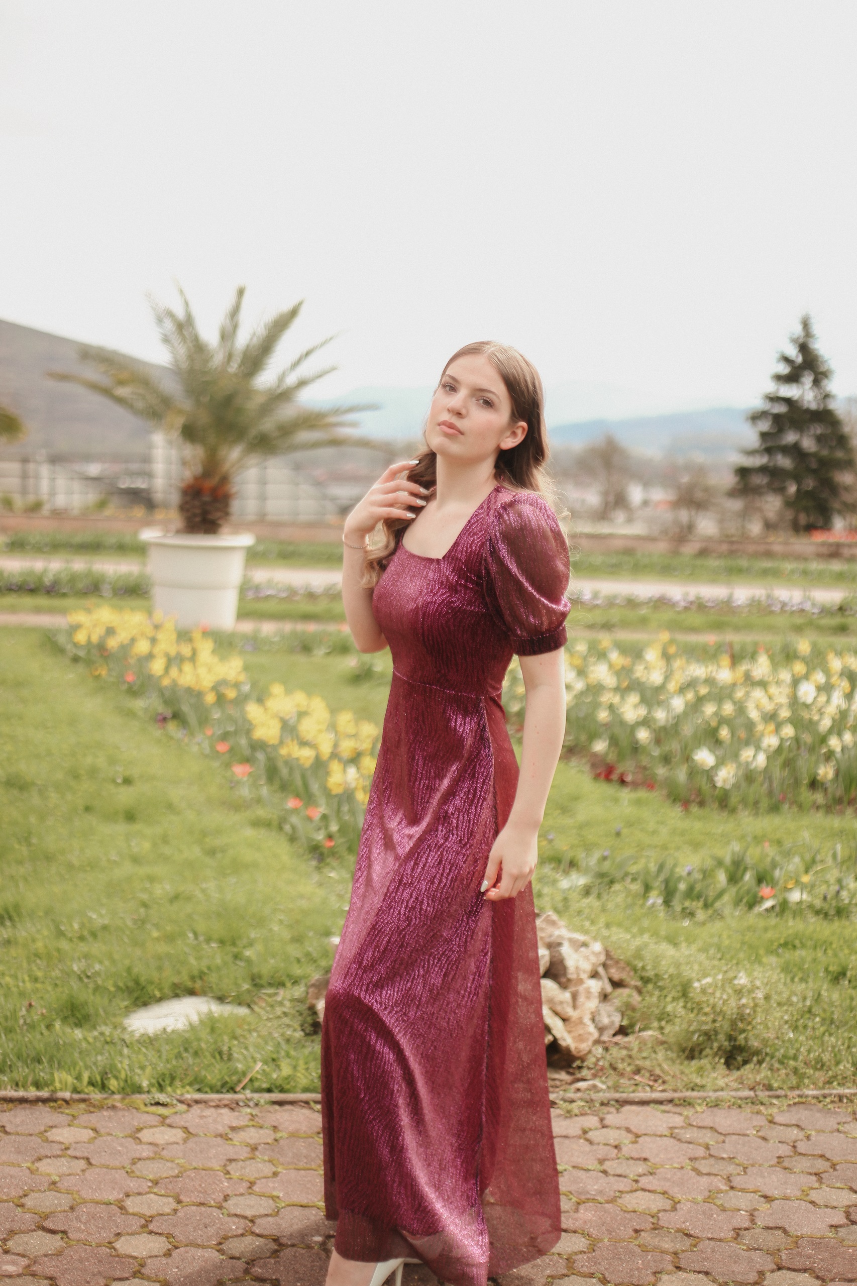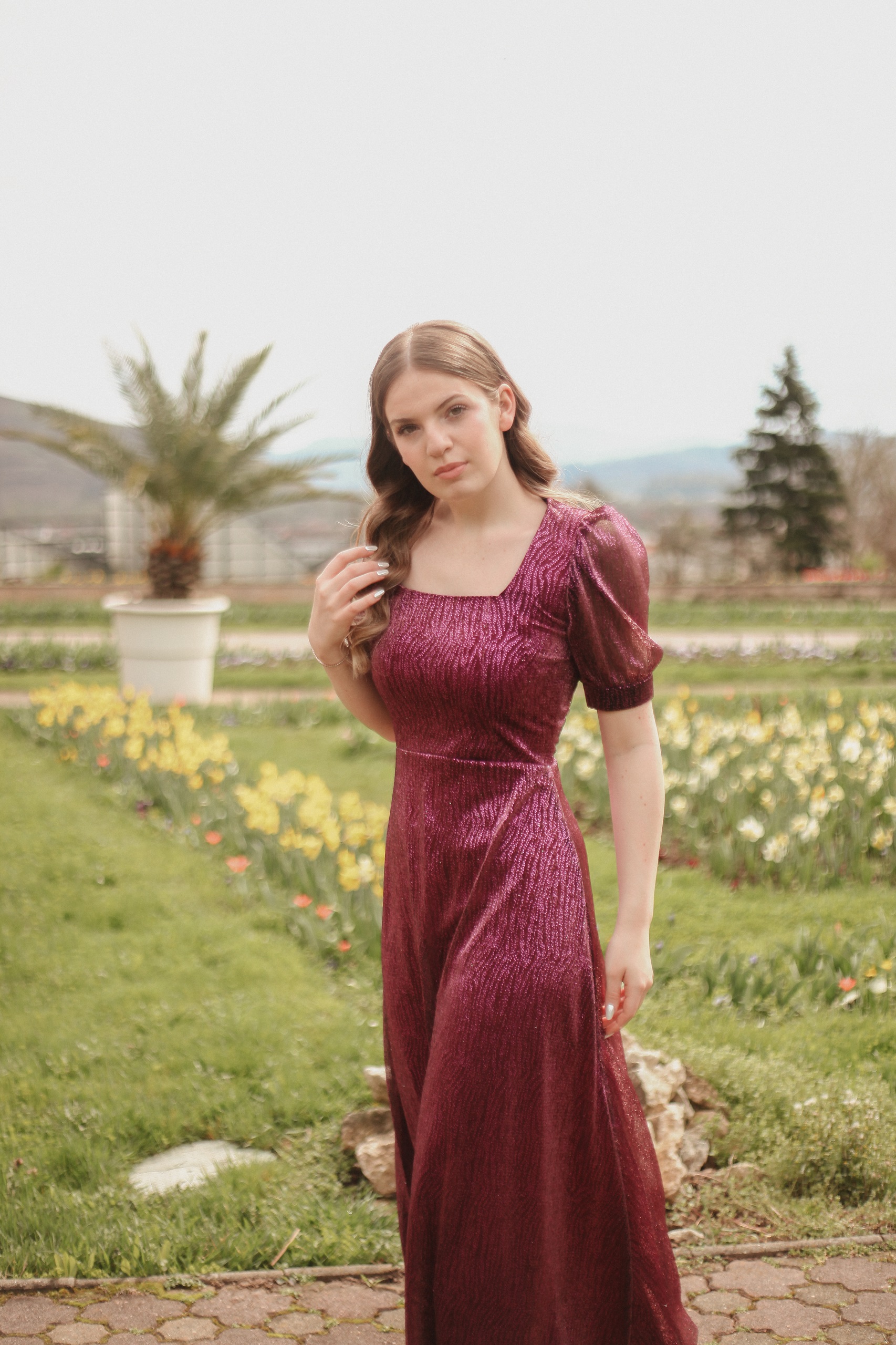 ✔ Material delicat și vaporos – voal imprimat cu accente luminoase pentru un efect glamour